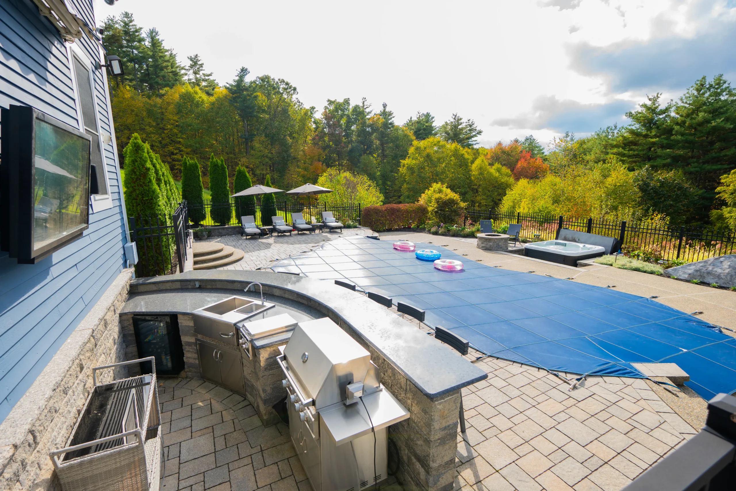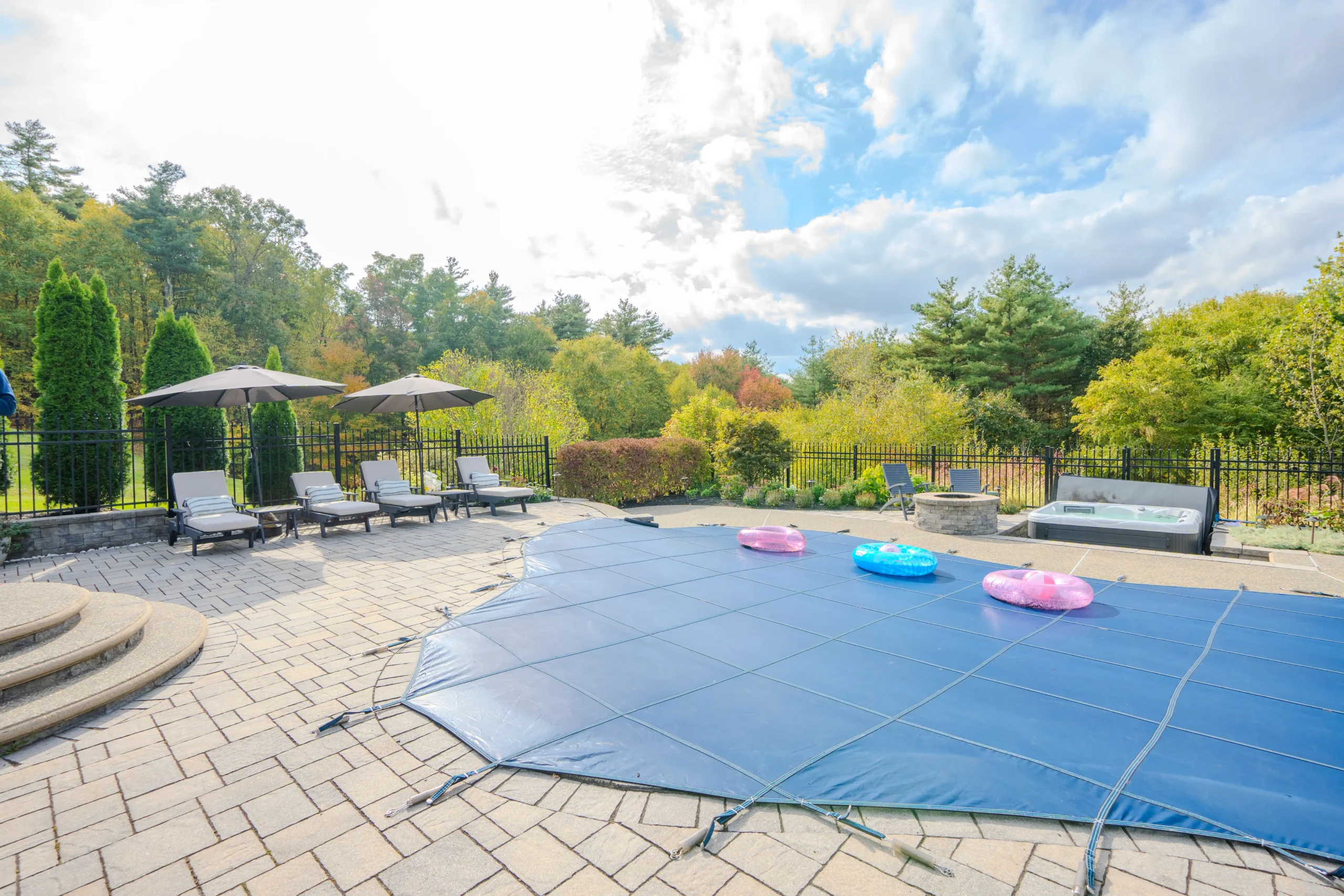 Step into modern luxury with this architectural masterpiece on 2.59 acres in Berlin. This expansive home offers seven bedrooms, six bathrooms, and a perfect blend of contemporary elegance and warmth. The gourmet kitchen features sleek design, a spacious island, walk-in pantry, and eat-in area. The opulent primary suite boasts breathtaking views, plus four additional upstairs bedrooms. The finished lower level includes a fifth bedroom, gym area, and access to a stone patio. Outdoors, enjoy a heated saltwater pool, hot tub, fire pit, outdoor kitchen, and bar. Inside, find soaring ceilings, hardwood floors, a granite fireplace, office/guest room, oversized playroom, and a stunning master bath with Italian marble. Additional features include surround sound, video surveillance, Aqua Pod lighting, Mist Guard, whole-house generator, and a heated three-car garage. This residence combines luxury, privacy, and modern living at its finest.